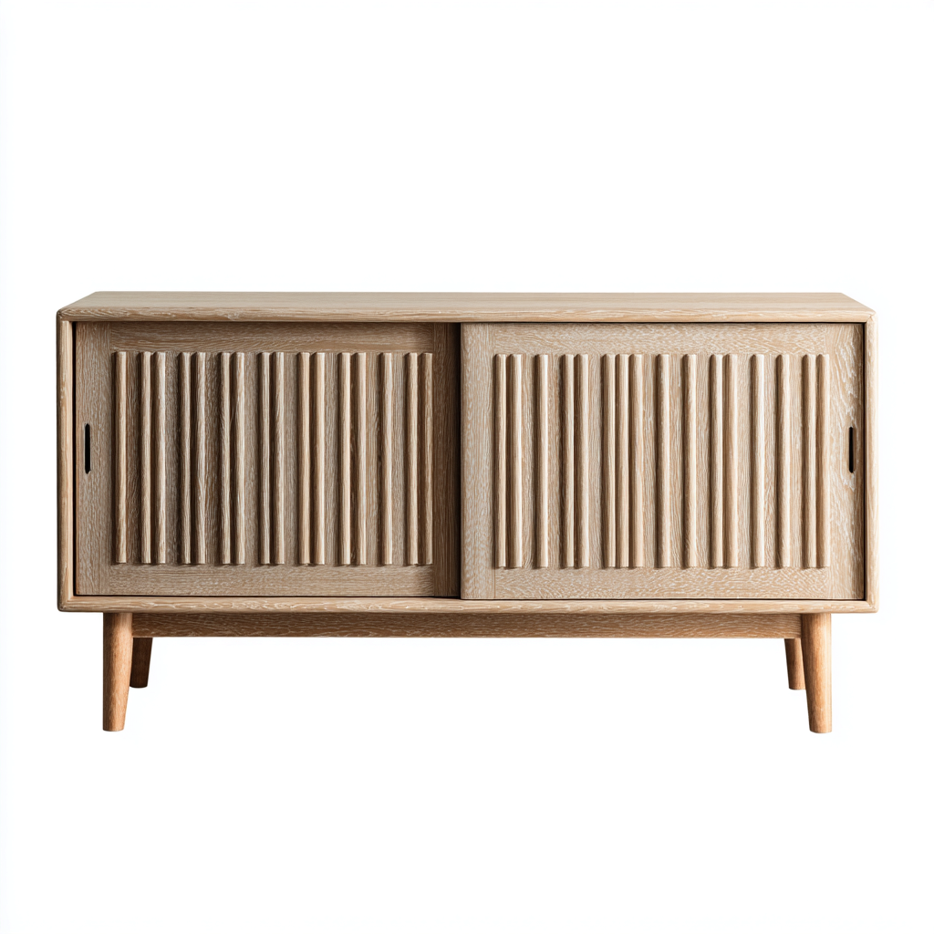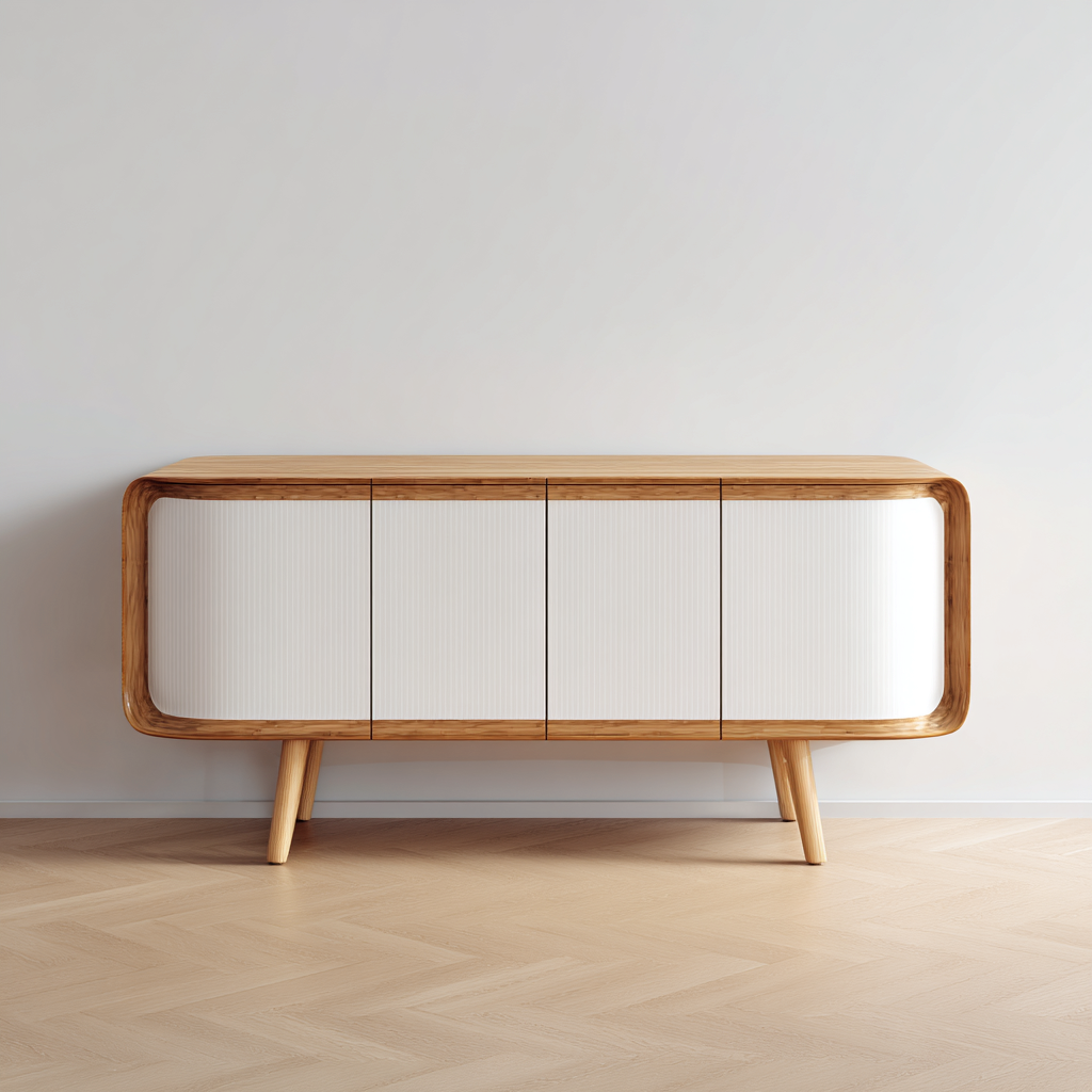 Credenza in legno curvato 180x42x60 cm - bianco-naturale - stile nordico per soggiorno