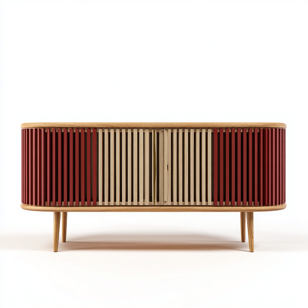 Credenza moderna 180x45x75 cm - rosso e naturale - design contemporaneo