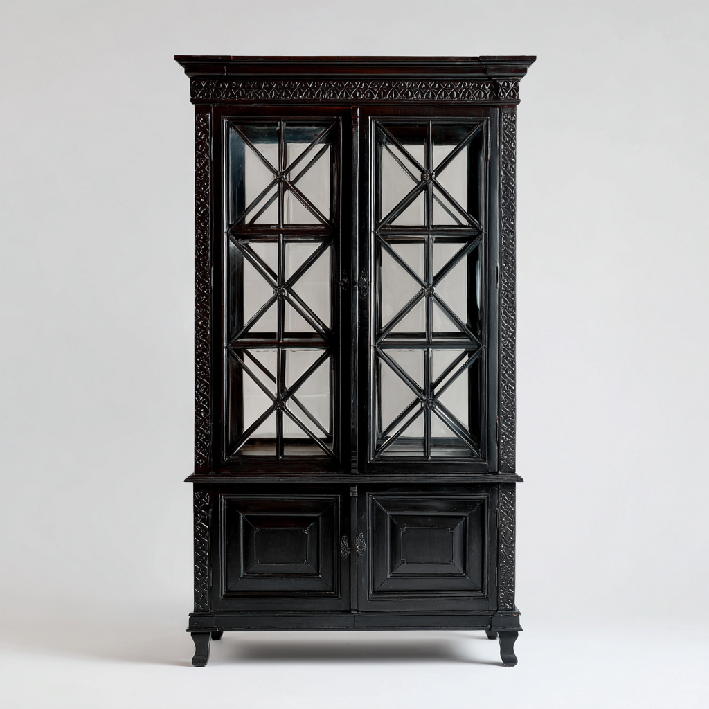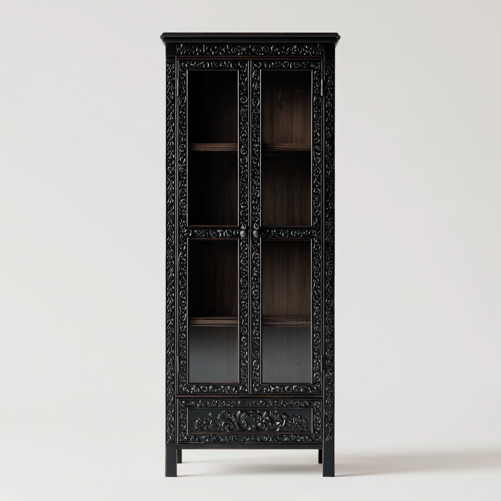 Vetrina in legno intagliato 75x40x185 cm - nero - adatta per soggiorno - design classico