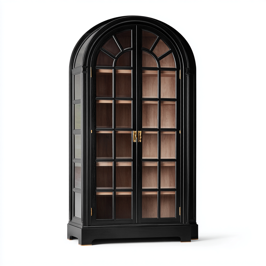 Vetrina con 2 ante ad arco per soggiorno 90x45x190 cm - nero-marrone - design classico