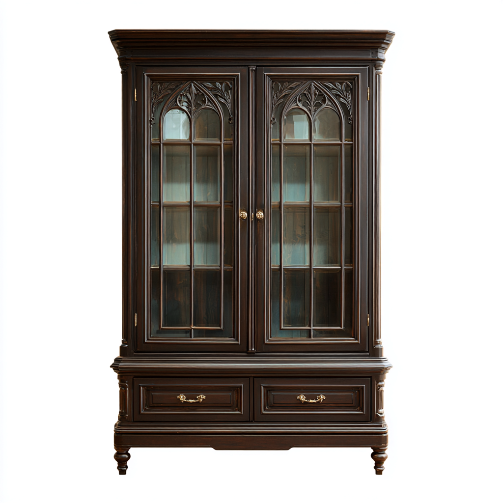 Vetrina in legno con ante in vetro e cassetti 100x45x190 cm - Marrone scuro - stile classico