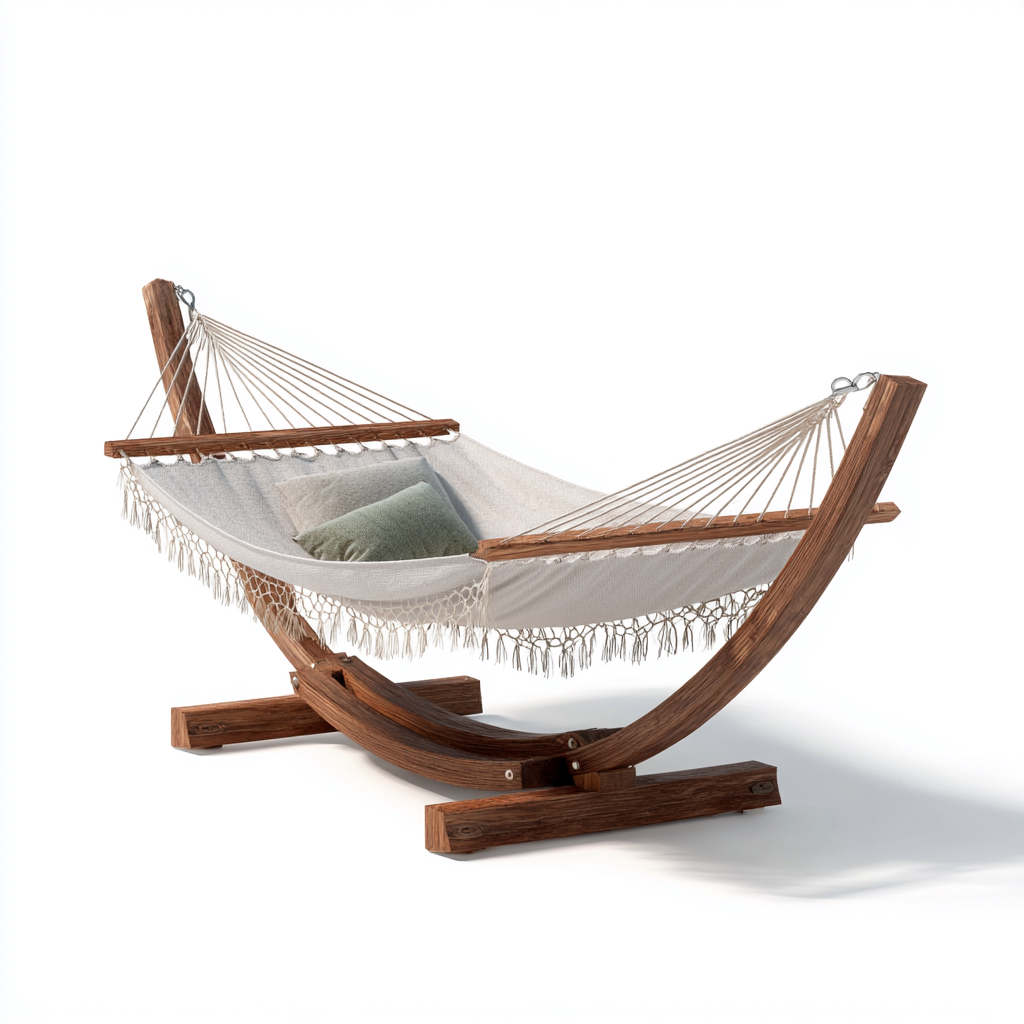 Questa amaca con supporto autoportante e progettata per offrire un esperienza di relax all aperto in giardino terrazza o veranda. La struttura arcuata in legno assicura stabilita mentre il tessuto intrecciato crea una superficie confortevole e traspirante.