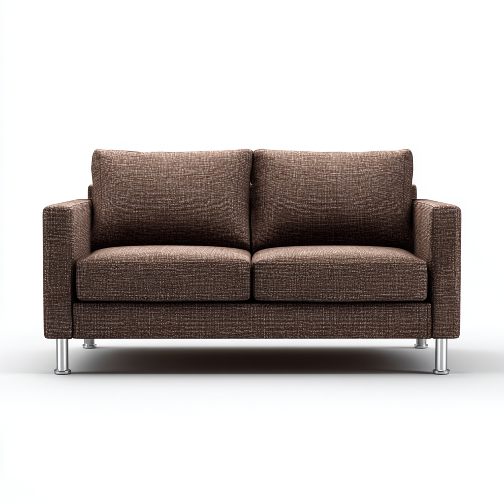 Struttura solida con rivestimento in tessuto di colore marrone, dalla texture piacevole e resistente. I piedini in metallo con finitura lucida assicurano stabilità e un tocco moderno al design complessivo.