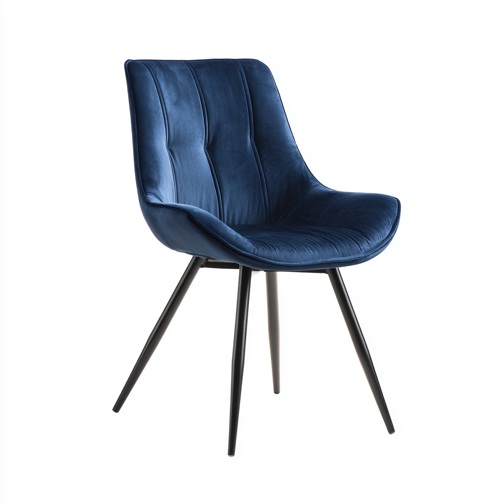 La seduta e rivestita in tessuto di colore blu con imbottitura confortevole. La struttura e sostenuta da gambe in metallo con finitura nera che garantiscono stabilita e solidita.